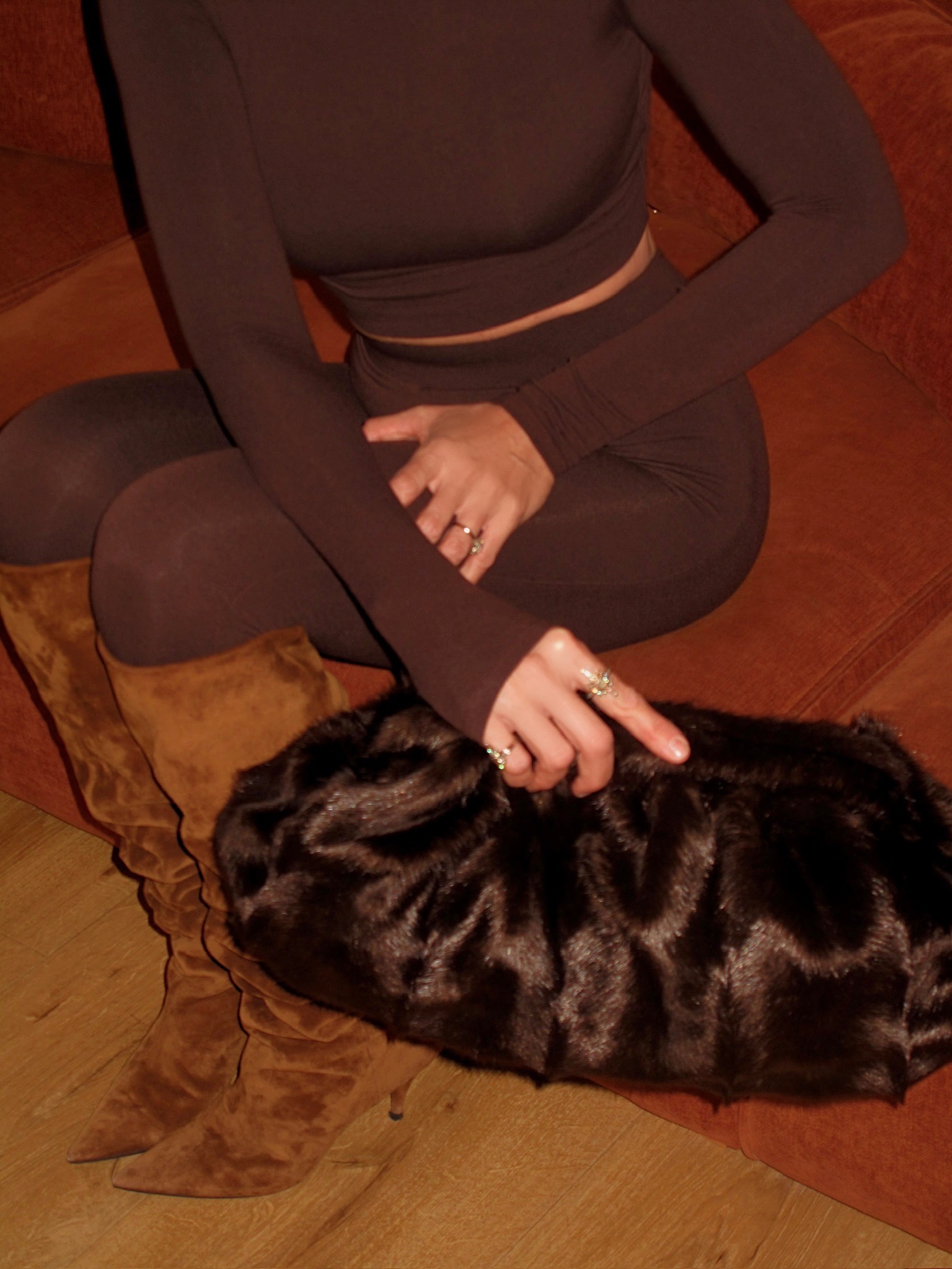 תיק הקלאץ’ המושלם בגוון שוקולד.