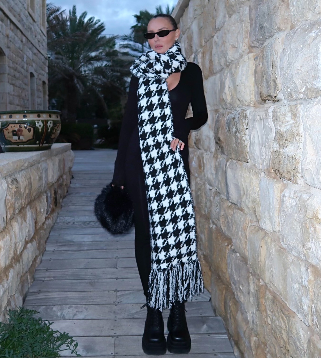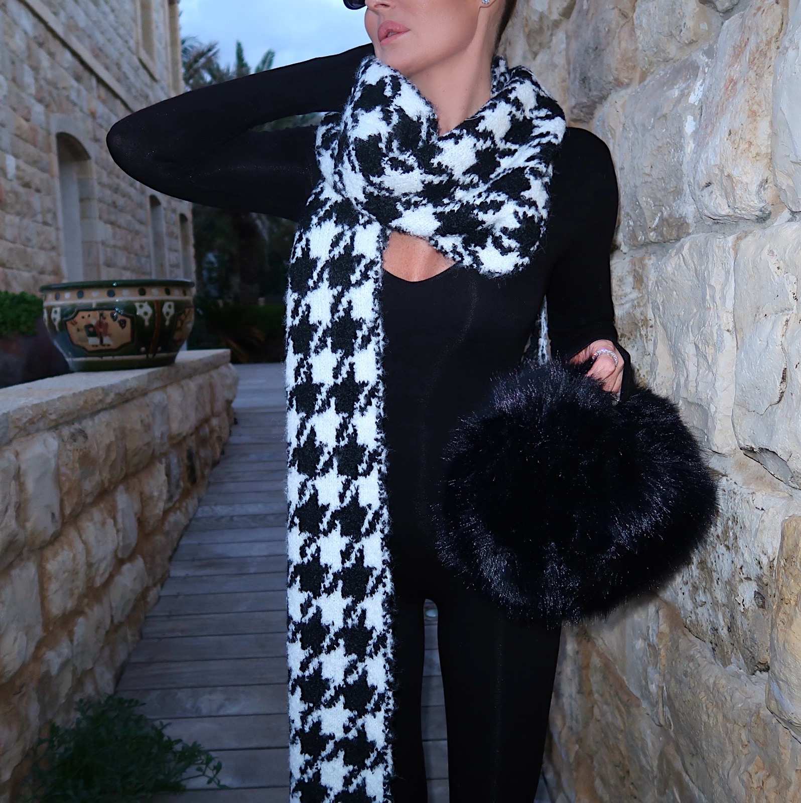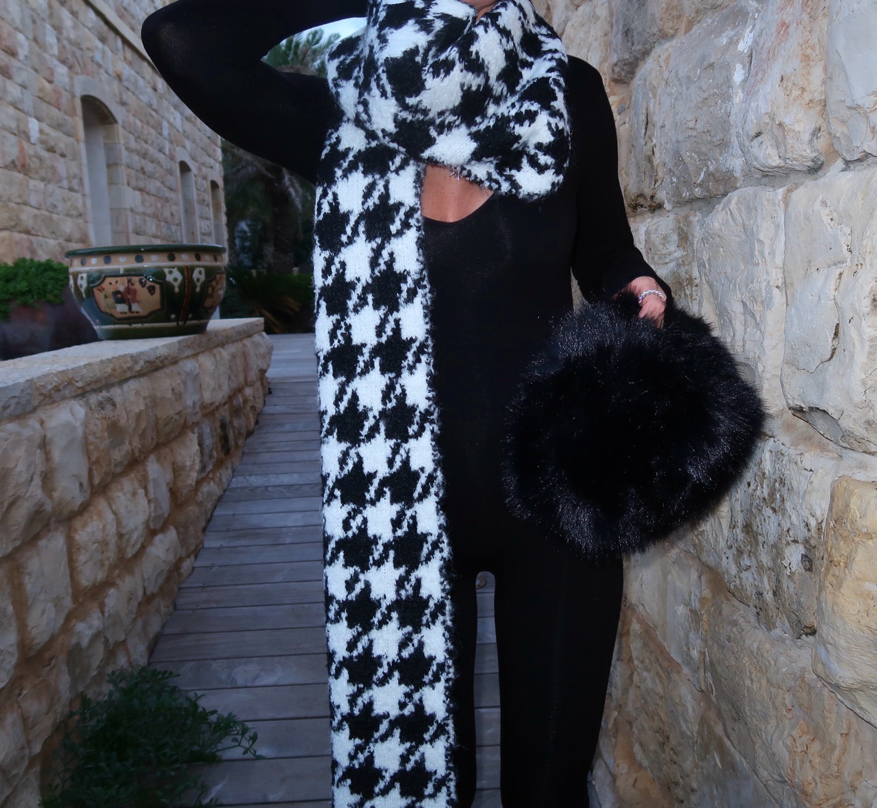 השאל הכי מושלם שקיים, צעיף שהוא כמו שאל עשיר ומפנק, בגוון שחור לבן,