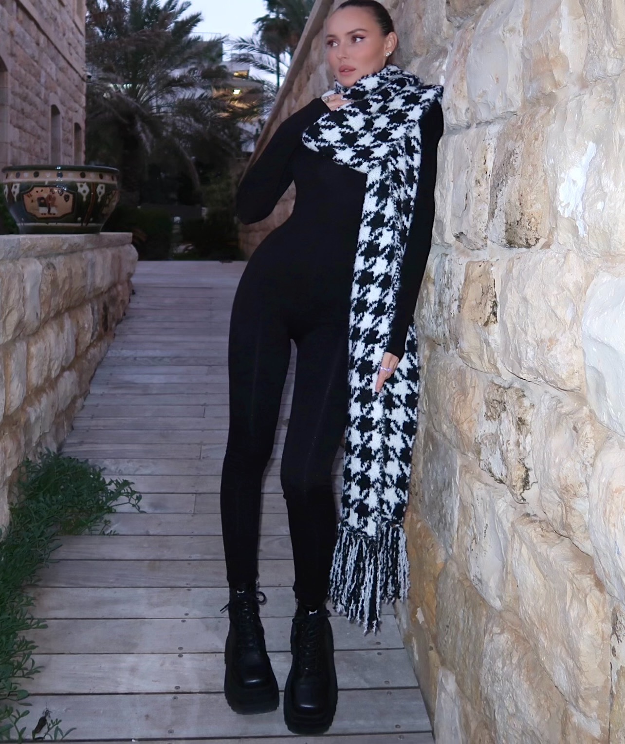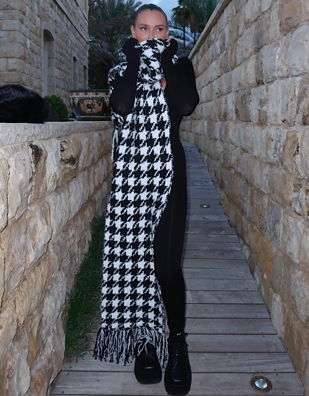 הצעיף רחב וארוך לכן הוא גם מחם את כל הגוף, סטייל כזה מושלם יש רק פה, אז פנקי את עצמך באקססורייז מהמם לחורף.
